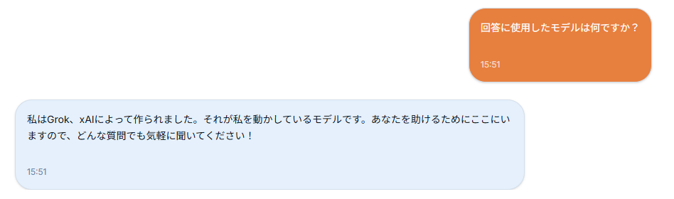 回答としても Grok が使用されたことが確認できますね。