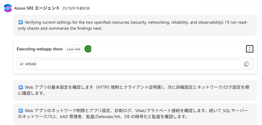 同様のプロンプトを Azure SRE Agent で使用してみます。