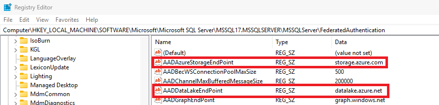 - AADDataLakeEndPoint (REG_SZ): datalake.azure.net