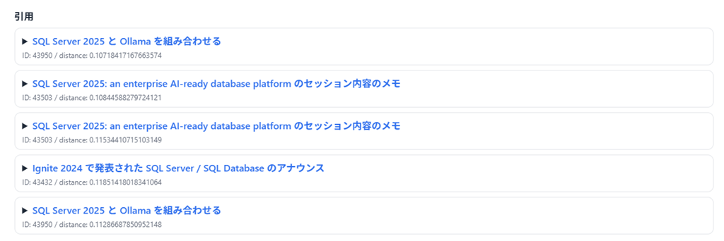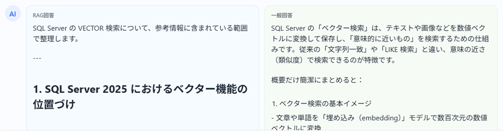 ブラッシュアップしないといけない箇所はまだあるのですが、SQL Server の T-SQL を使用したベクター検索として、一般的に必要な実装が行われているアプリになっているのではないでしょうか。