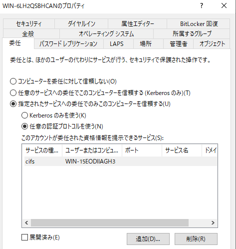 CIFS の委任の設定の反映ですが、私の環境では「最大 15 分」かかるようでした。