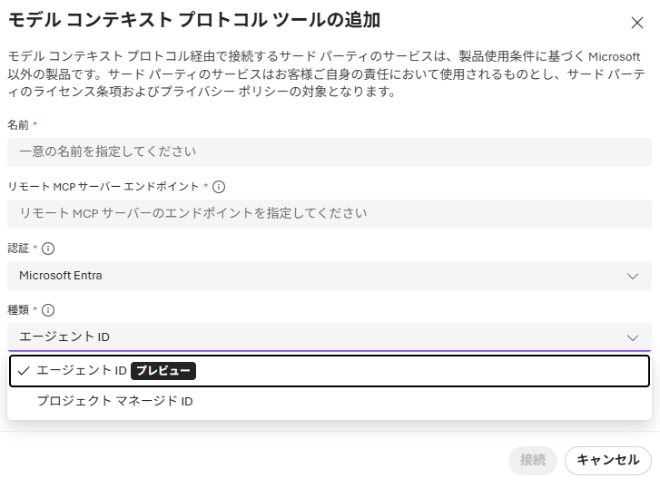 Microsoft Foundry でエージェントを作成し、ツール (MCP) に接続する際には、「エージェント ID」を使用して MCP Server にアクセスすることができます。