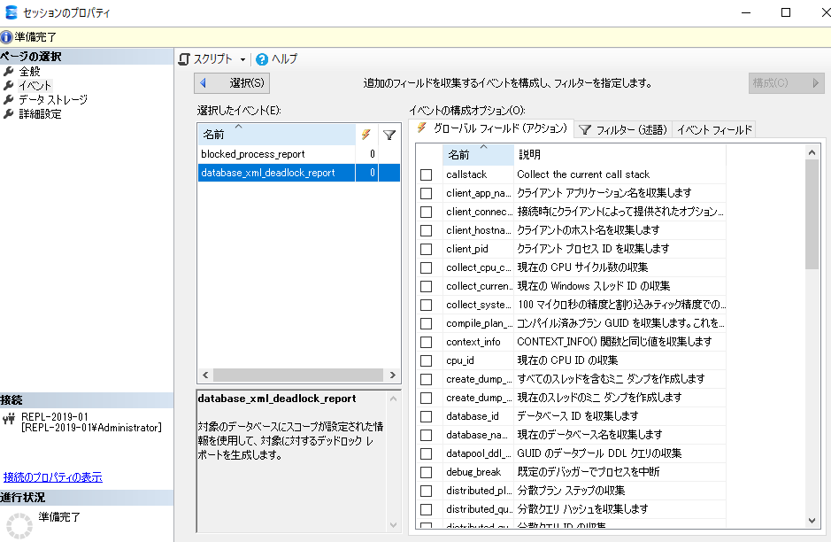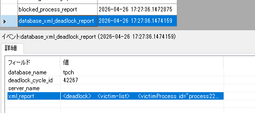 SQL Server では、「database_xml_deadlock_report」の拡張イベントを取得することで、デッドロック発生時のレポートを拡張イベントとして取得することができます。
